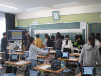 図画工作科の学習で、二人組でアニメーションづくりに挑戦しました。絵やものの位置を少しずつ変えて動きを作ったり、音声を入れたりしながら、物語を考えて作りました。最後に鑑賞会をしましたが、どの作品も工夫や面白さがたくさんあり、子どもたちは楽しんで鑑賞することができました。
