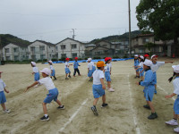 2025年5月27日 17時04分体育では折り返しリレーをしたり、たからとり鬼をしたりして、運動場を友達と一緒に走ることを楽しんでいます。たからとり鬼は、鬼の役の友達の間をすり抜けてボールをとる運動遊びです。